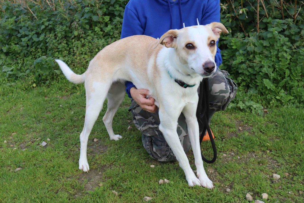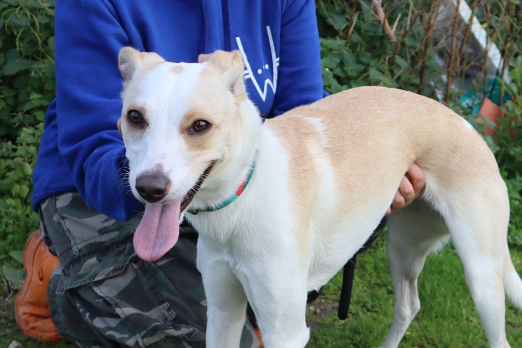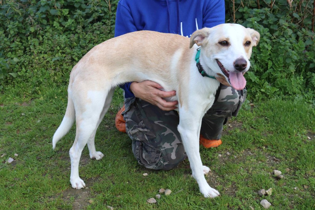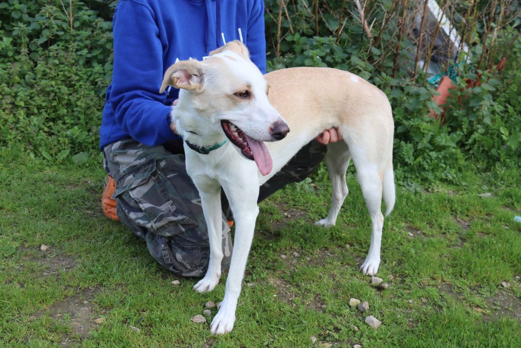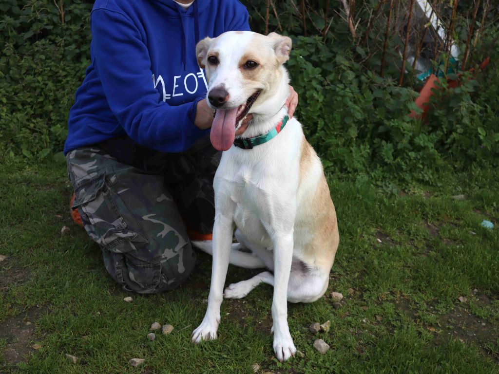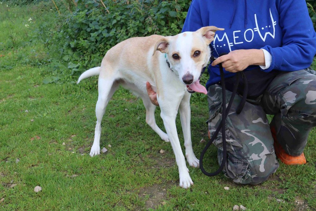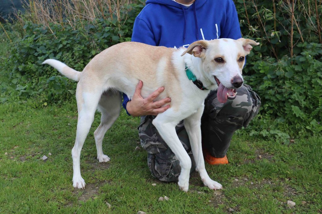 Hun kom til vores samarbejdsshelter som helt lille hvalp, efter hendes mor blev fundet på gaden med sit kuld. Hun blev hurtigt adopteret som 2 måneder gammel, men kom desværre retur et år senere, fordi hun var for “livlig”. Hun er dog bare en helt normal unghund med energi, legeglæde og lyst til at udforske verden.