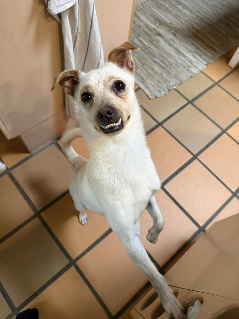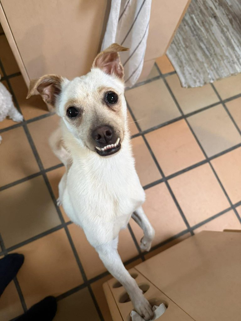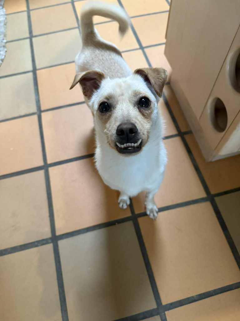 Minie er virkelig sød, kærlig og fuld af glæde, og hun spreder god stemning, hvor end hun kommer hen. Hun nyder selskab med mennesker og trives også med andre hunde, som hun leger fint med. Minie er en mild og charmerende lille hund, der hurtigt knytter sig og vil være en skøn ledsager i sit nye, trygge hjem.