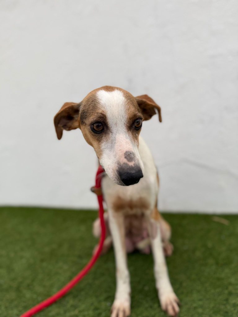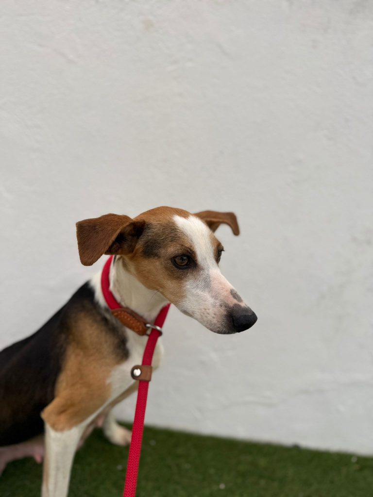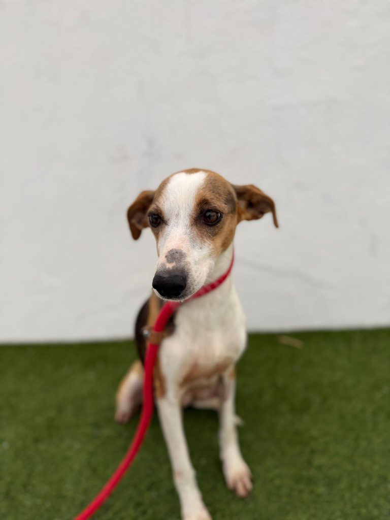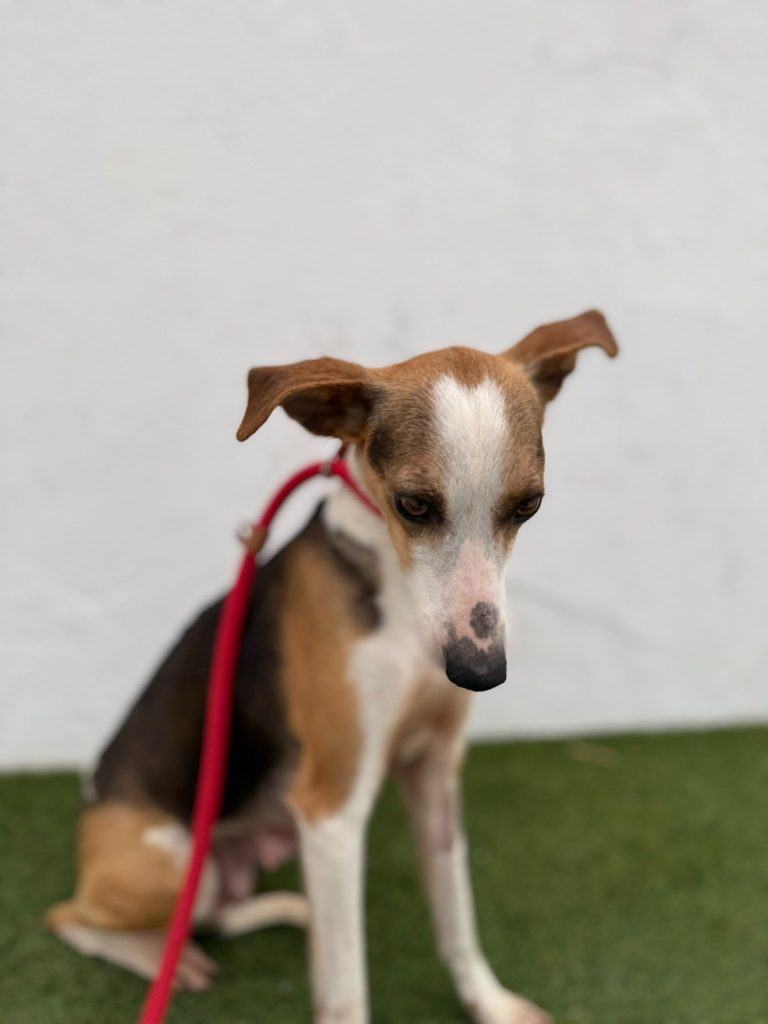 Minnie er pt. på vores samarbejdshelter i Portugal, hvor hun vil være, indtil hun bliver adopteret.