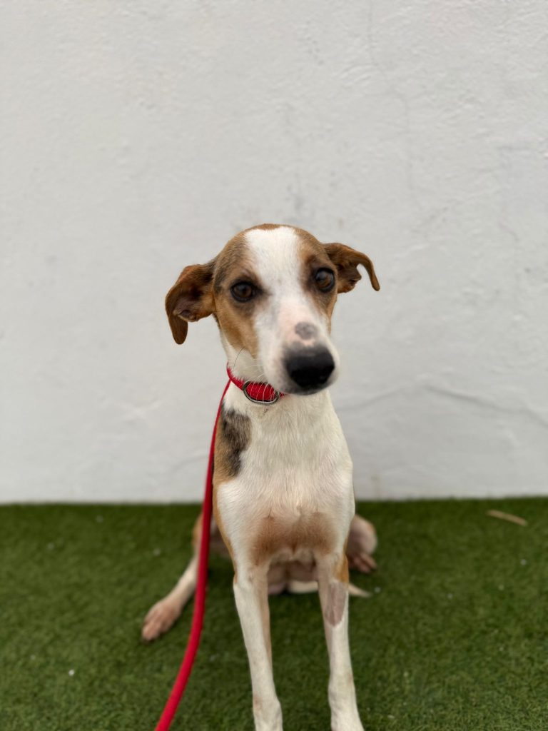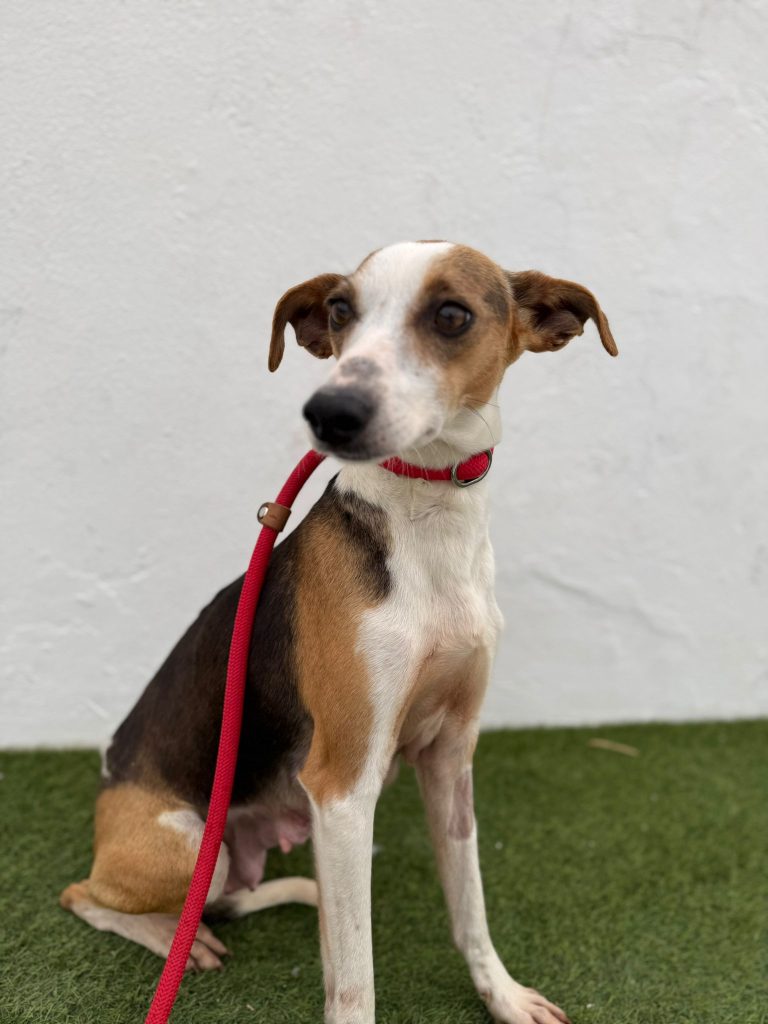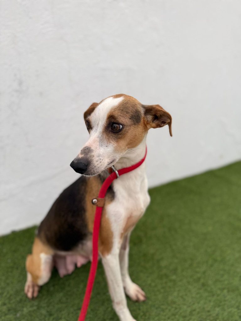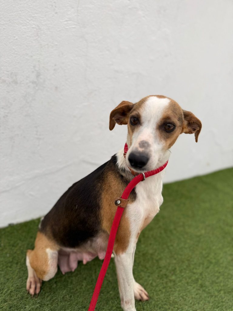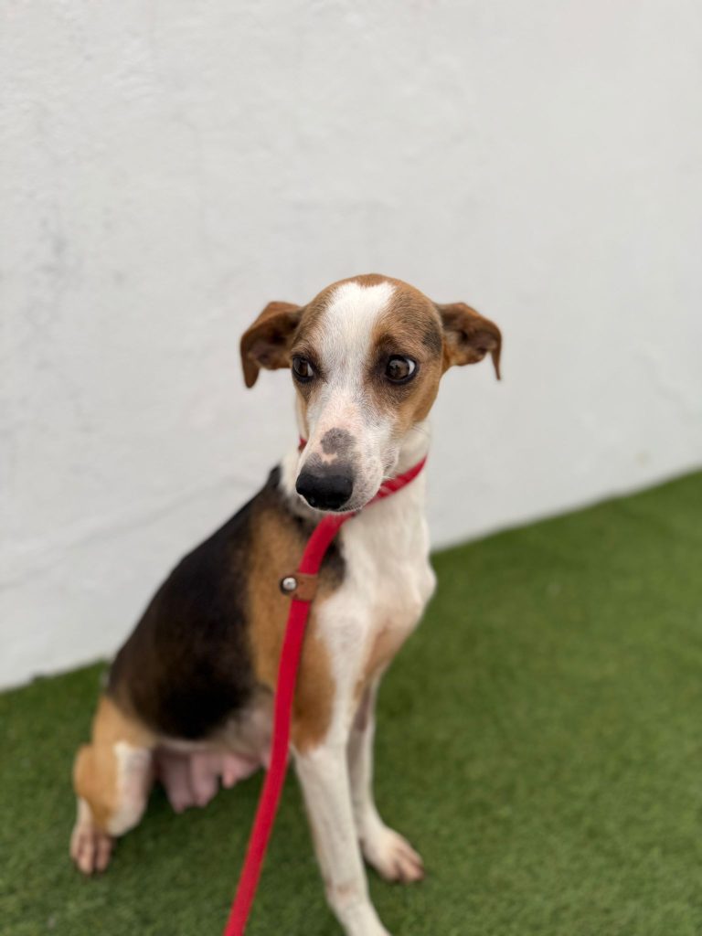 Minnie er pt. på vores samarbejdshelter i Portugal, hvor hun vil være, indtil hun bliver adopteret.