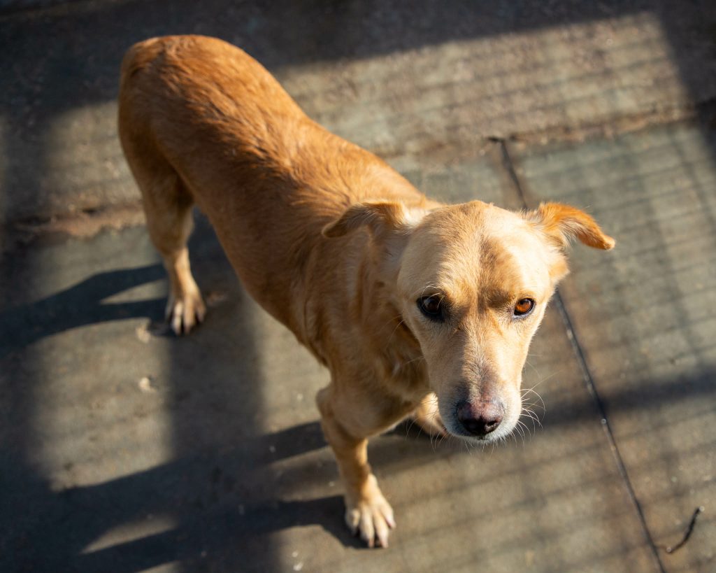 Han er på et shelter I Portugal, hvor han vil være, indtil han bliver adopteret.