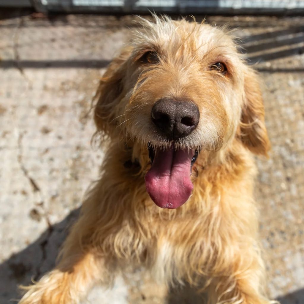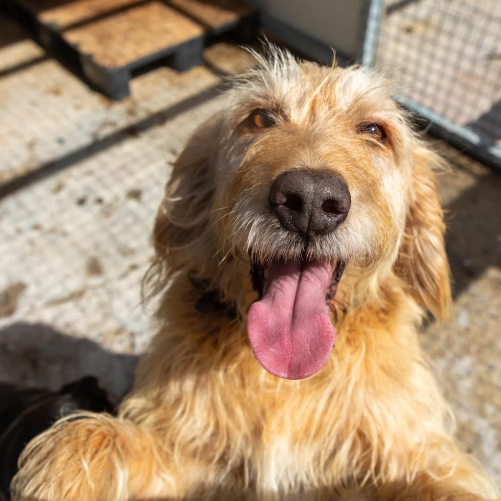 Han giver de bedste kram og deler gladeligt ud af kærlige slikker. Han er pt. på vores samarbejdsshelter i Portugal, hvor han vil være, indtil han bliver adopteret.