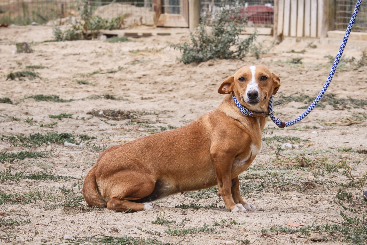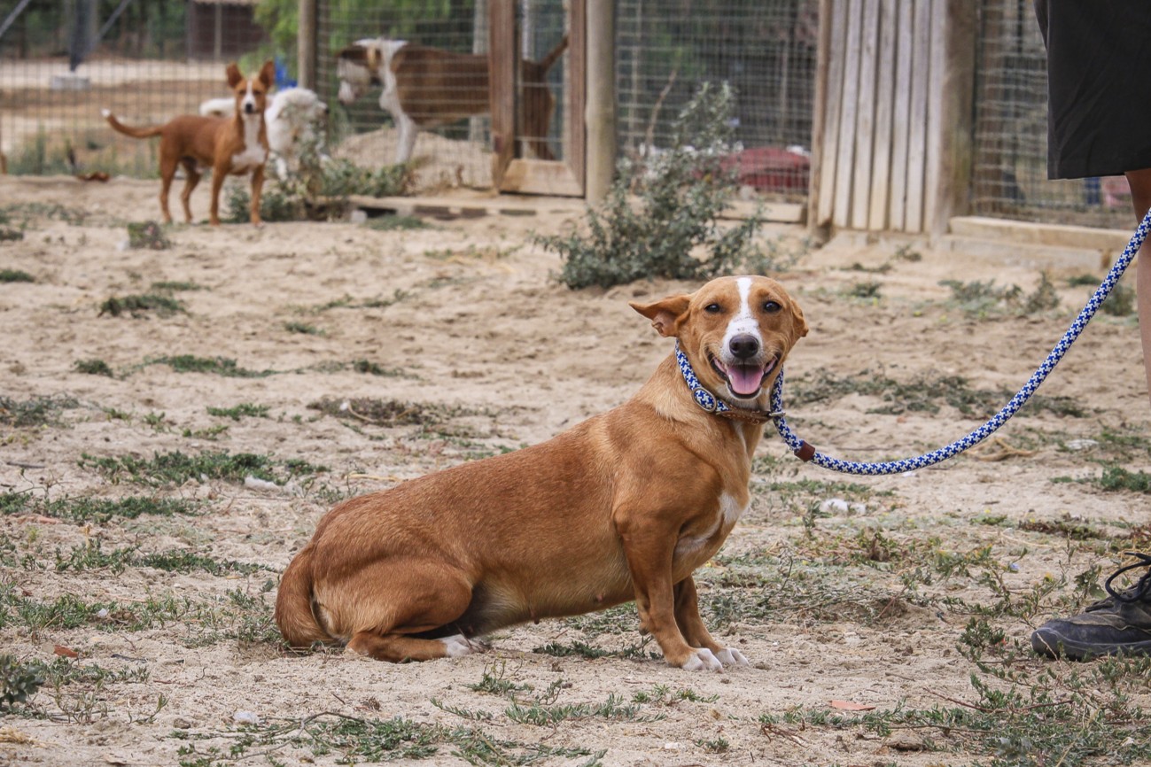 Toffee kom til os fra en kommunal hundepension i Vila Franca de Xira – et sted, hvor hunde desværre sjældent får en chance for adoption. Hun og flere andre små podengo-hunde blev fjernet fra en hamstringssag, hvor de levede under meget dårlige forhold.